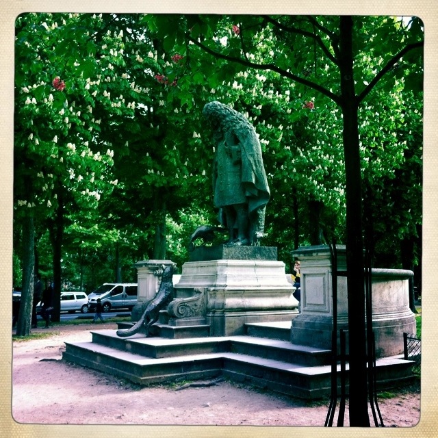 On an other side of the garden, you can find wondering areas and ” resting” areas. At the ” entrance” of the kids area ( it’s free access it s a public garden) you have a great sculpture of Jean de la Fontaine a tale teller very known in France. And his famous crow, fox and cheese!