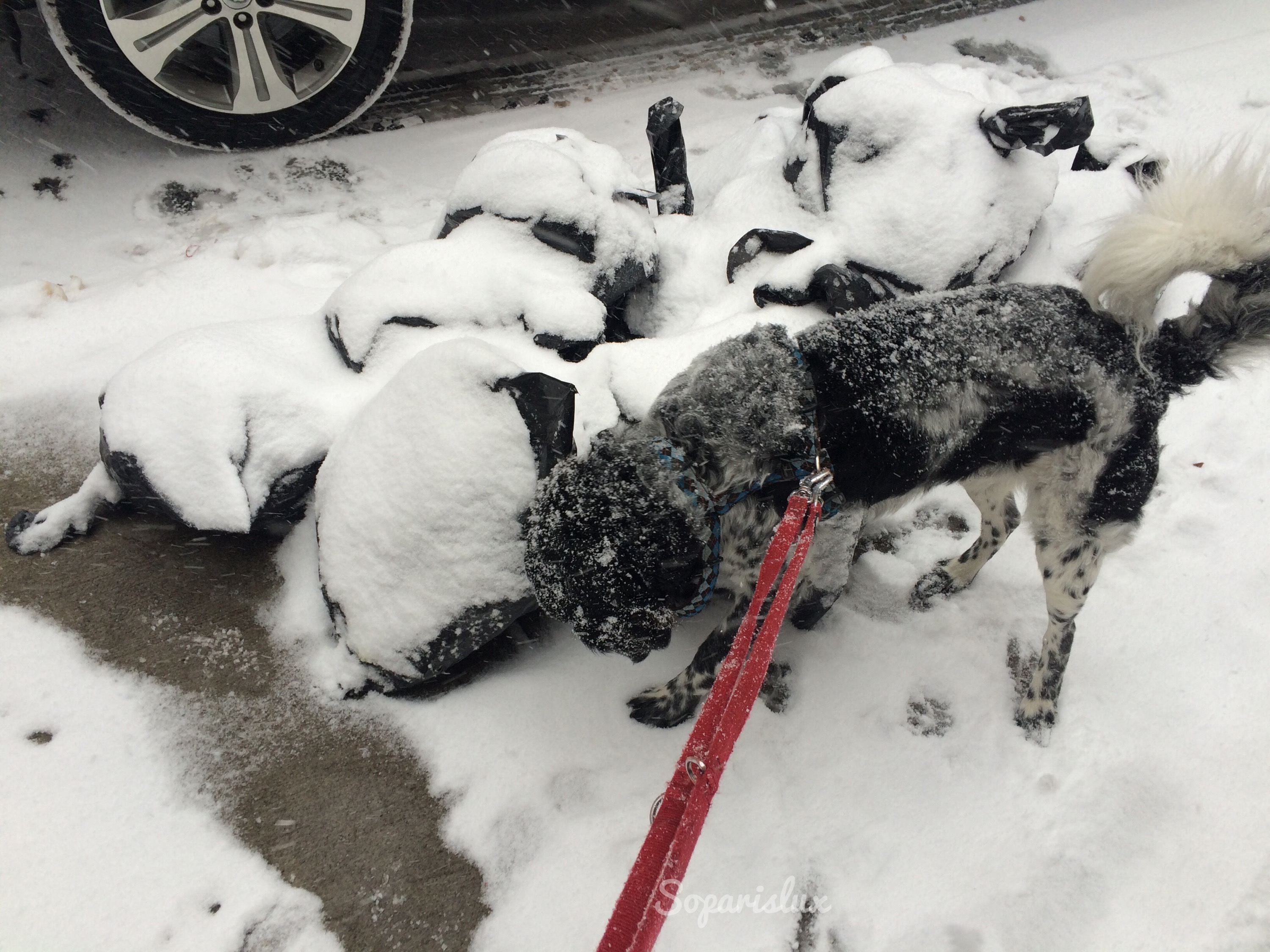 In the meantime some pictures, snow is pilling up so fast, only rare snow flakes this morning, inches are now falling… Let see where it will get…