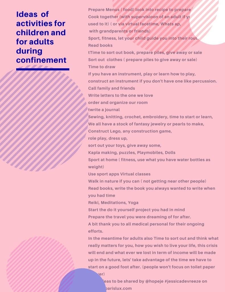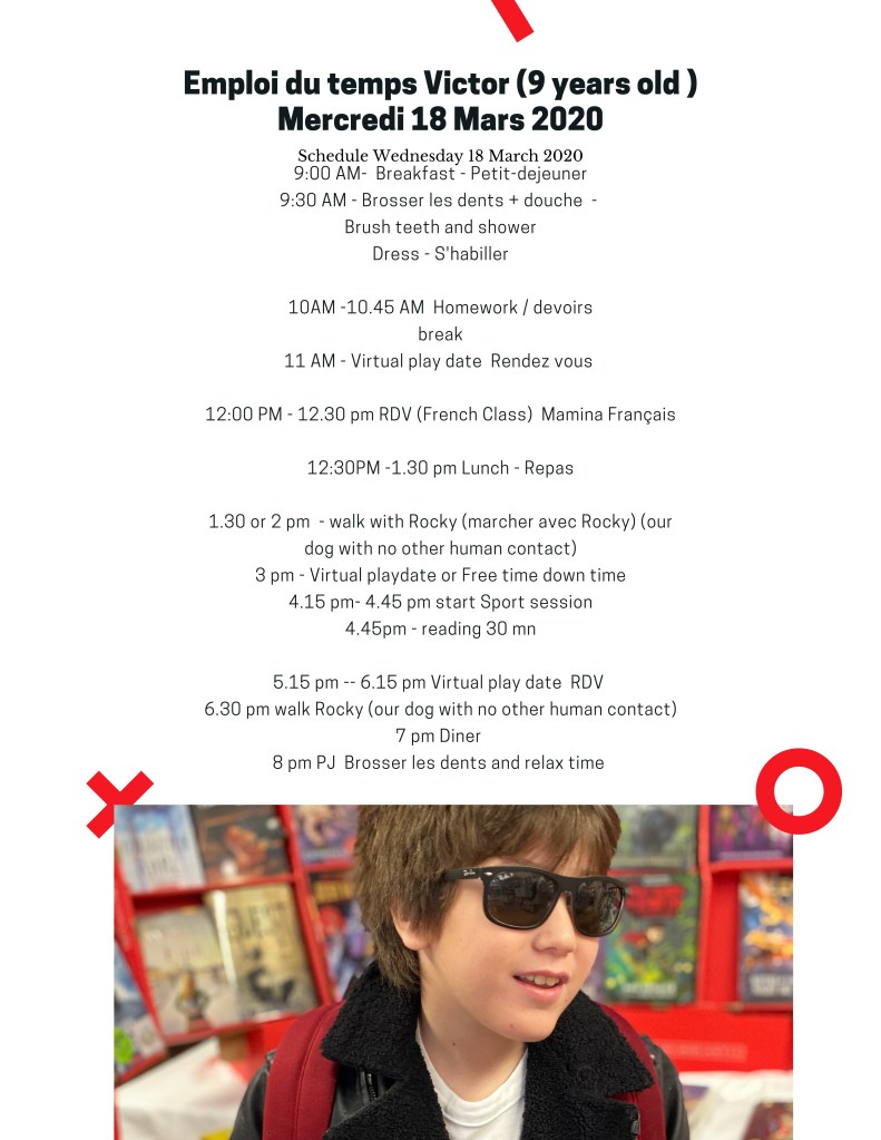 So feel free to use and share the below ideas, adapt the structure of the schedule to the amount of work your kid have, and the activities to your liking….
