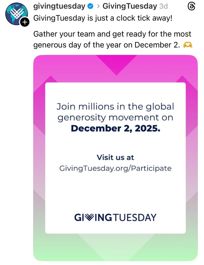 Miami Give is behind us, thank you to all who have already and again supported us, and Giving Tuesday is ahead of us — reaching its pinnacle on December 2nd, 2025.